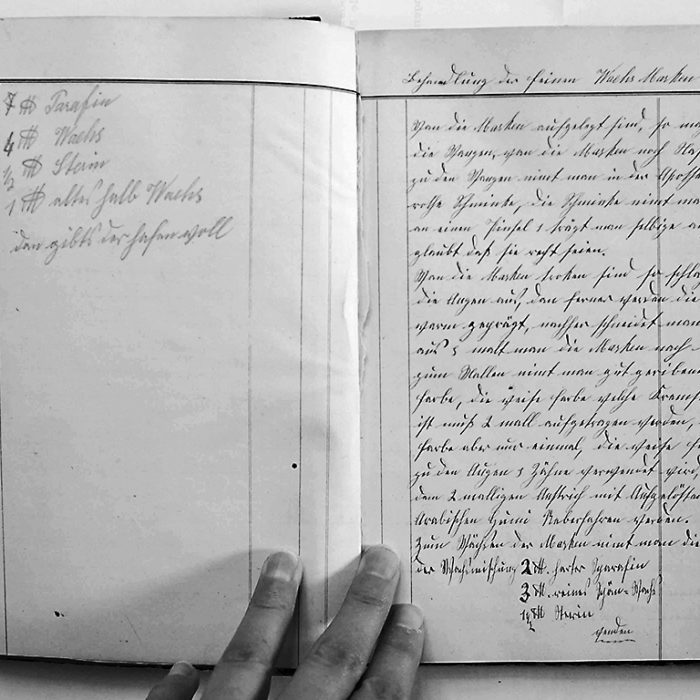 Dominik Kälin (1846-1909) hat in seinen Notizbüchern die Herstellung von Wachsmasken beschrieben. Sie ähnelt der meinen. Die gleiche Wachsmischung und gleiches Vorgehen. Was für Wachsmasken gibt es sonst noch? Ich stehe vor meinen Maskenbüchern. Überlege. Ich schaue mir die Bücher mit dem Fokus Wachsmasken durch. […]