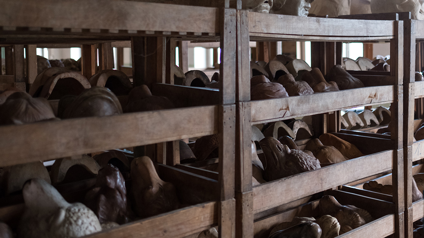In wenigen Jahren werden mein Mann und ich pensioniert. Eine Nachfolge für die Maskenwerkstatt ist nicht in Sicht. Und da stellt sich die Frage, wohin mit dieser Formensammlung. Vor Kurzem sind wir mit dem Ortsmuseum aus unserer Gegend zusammengesessen und haben gemeinsam nach einer Lösung gesucht. Im Moment sieht es danach aus, dass unsere komplette Werkstatt ins Museum überführt wird. Ein komisches Gefühl. Das kann ich Ihnen sagen. Aber Immerhin werden die Formen nicht weggeworfen, so wie das in Manebach geschehen war.