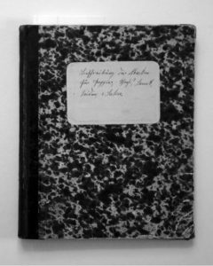 „Wir schauen uns jetzt noch das zweite Couvert an und dann zeige ich Ihnen mein Atelier. Vielleicht bringt das uns weiter.“ Im Couvert befinden sich zwei weitere Notizbücher. Ein altes Moleskin mit Maskenbestellungen und ein grösseres Heft mit irgendwelchen Notizen. Ich werde sie später unter die Lupe nehmen.
