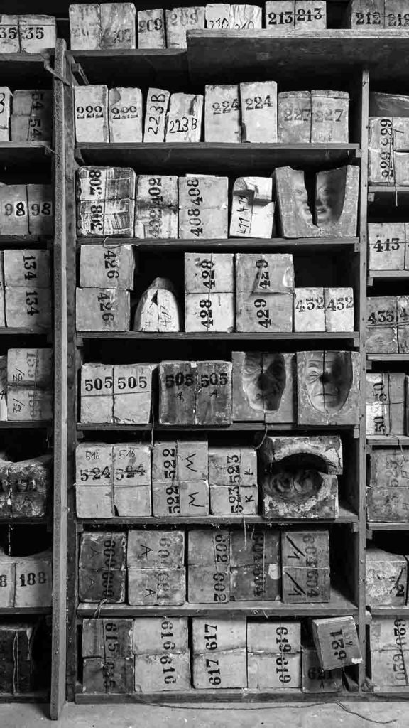 Ich schalte das Licht ein. Mache einige Schritte. M.O. bleibt stehen und schaut. Nach einer längeren Pause höre ich ruhige, klare Wort. „Also, Frau Drückerin. Das sind definitiv die Formen von Domini Kälin. Ich weiss, dass im umgebauten Haus von Dominik noch alte Negativformen sein könnten. Das hat mir vor Jahren die heutige Mieterin erzählt. Sie meinte, sie wisse nicht, was sie damit anfangen soll. Ich habe ihr geraten, sie auf keinen Fall wegzuwerfen. Ist ja klar, ich als Sammlerin.“ Sie schmunzelt.